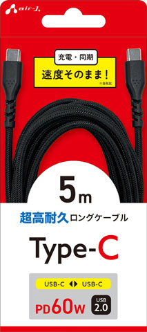 ■PD対応により、最大20V/3Aでの大電流で接続機器への給電が可能なUSB Type-Cケーブル